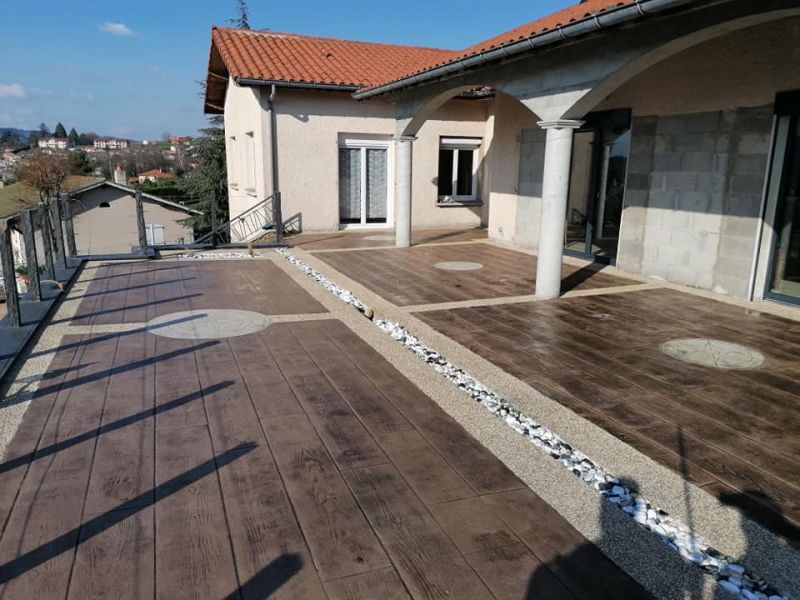 Le béton décoratif est désormais très utilisé pour un aménagement extérieur et notamment pour un aménagement terrasse.